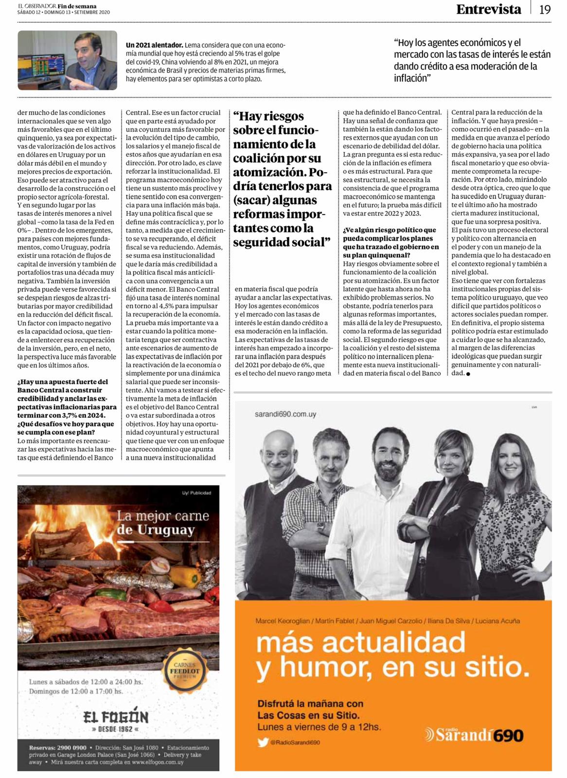 > Entrevista en Diario (Uruguay) > «El desafío es resistir las presiones políticas» para reducir el déficit y la inflación de Uruguay