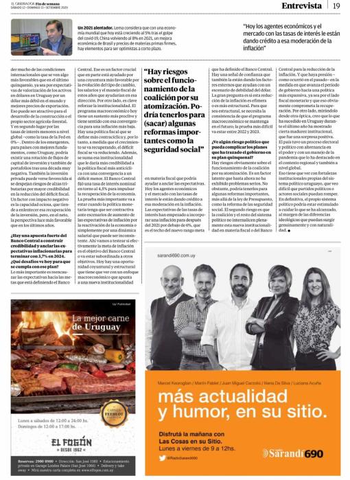 Economista con amplia experiencia en asesoría financiera y económica, seguimiento de la coyuntura local, regional e internacional, dirección de equipos de research, desarrollo de modelos econométricos y publicación de informes económicos. En Uruguay, es socio de Vixion Consultores, asesor y director de empresas, profesor de la Universidad de Montevideo y director-fundador de Enseña Uruguay. En Chile, En Chile es Economista Asociado de Grupo Security, socio-fundador de SK-Godelius e integrante del Consejo Fiscal Autónomo. Columnista permanente en Uruguay del diario El País y en Chile de Radio Duna. Expone habitualmente en foros sobre coyuntura económica e inversiones financieras. Consultor de empresas y entidades financieras, periodísticas y gubernamentales en Chile y Uruguay.