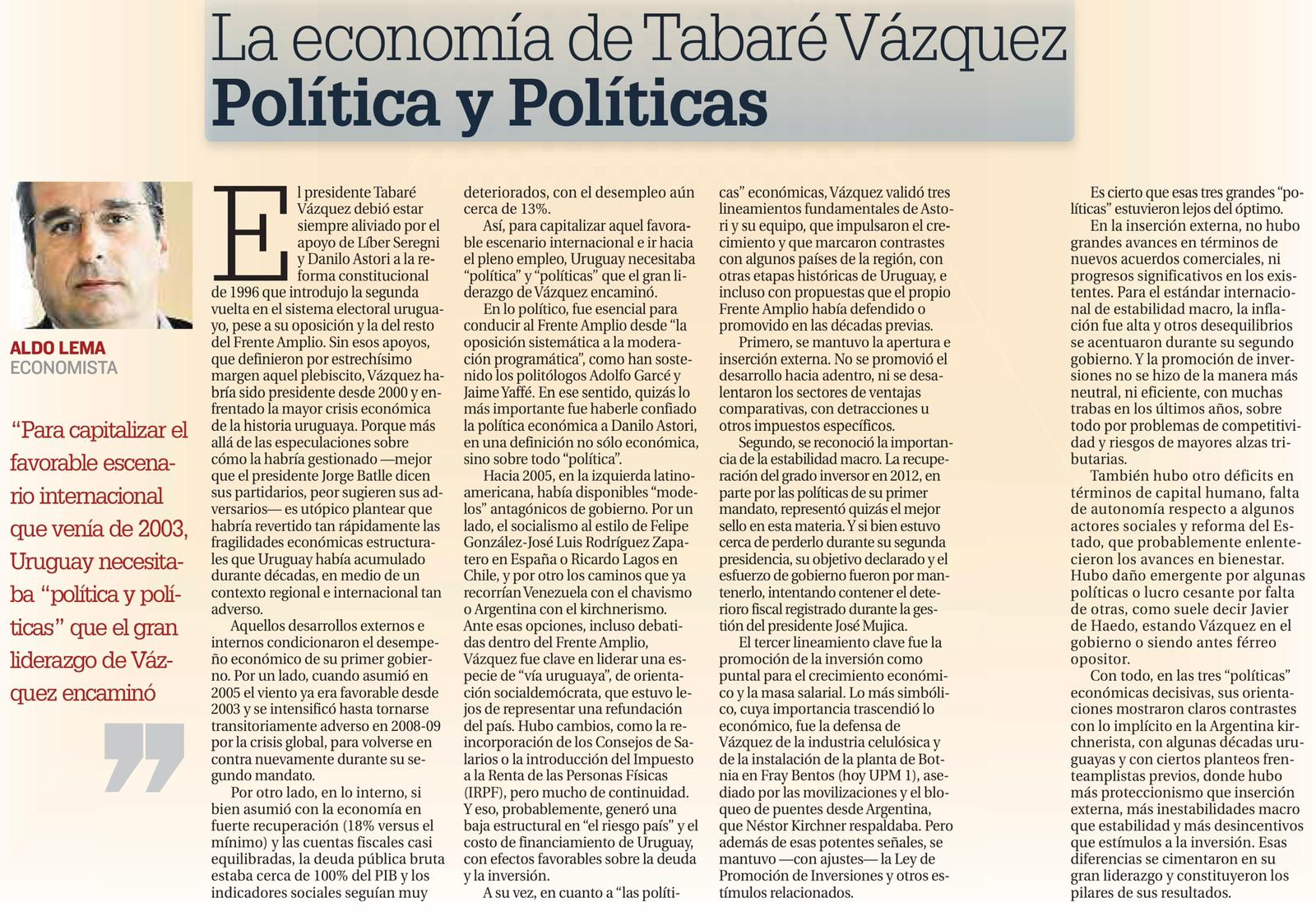 La economía de Tabaré Vázquez: política y políticas.