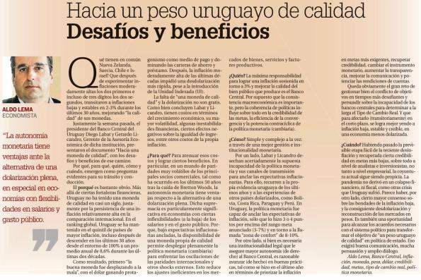 Justamente la semana pasada, el presidente del Banco Central del Uruguay Diego Labat y Gerardo Licandro, Gerente de la Asesoría Económica de dicha institución, presentaron el documento “Hacia una moneda de calidad”, con los desafíos y beneficios de ese camino.