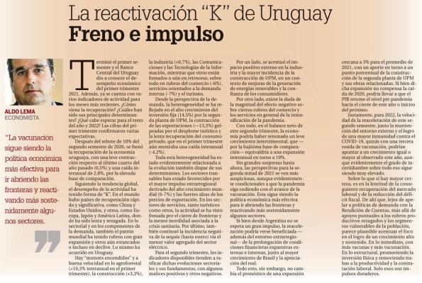 Siguiendo la tendencia global, el desempeño de la actividad ha tenido forma de “K”. En el mundo hubo países de recuperación rápida y significativa, como China y Estados Unidos, y otros en Europa y América Latina, donde ha sido lenta y rezagada. En lo sectorial y en los componentes de la demanda, también el patrón mundial ha tenido rubros con gran expansión y otros aún estancados o incluso en declive. Lo mismo ha ocurrido en Uruguay.