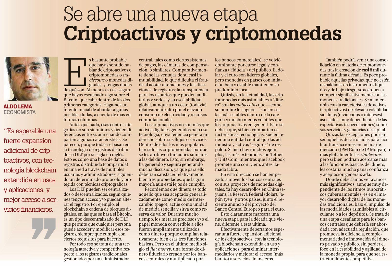 Inicio > Columna Internacional > Criptoactivos y criptomonedas: una nueva etapa