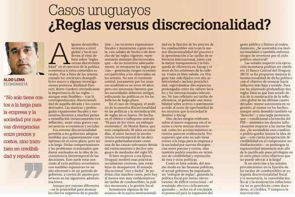 Si bien respecto a esa época, Uruguay moderó esas prácticas socialmente costosas, aún están lejos de desaparecer. El manejo discrecional “vive y lucha”. Se podrían citar muchos casos, pero hay al menos tres muy emblemáticos: las tarifas de combustibles, la política monetaria y la gestión fiscal.