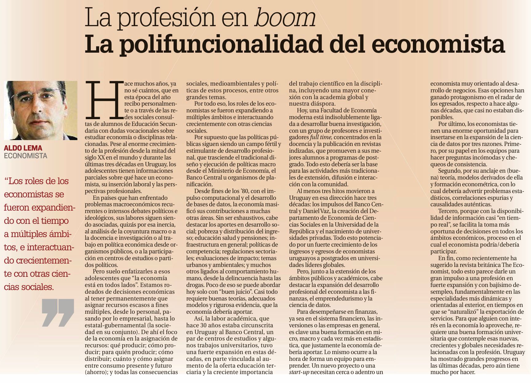 Inicio > Columnas Uruguay > La polifuncionalidad del economista: la profesión en boom