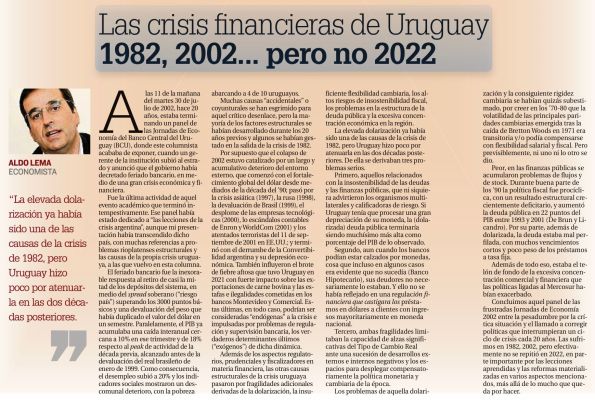Las crisis financieras de Uruguay: 1982, 2002, pero no 2022