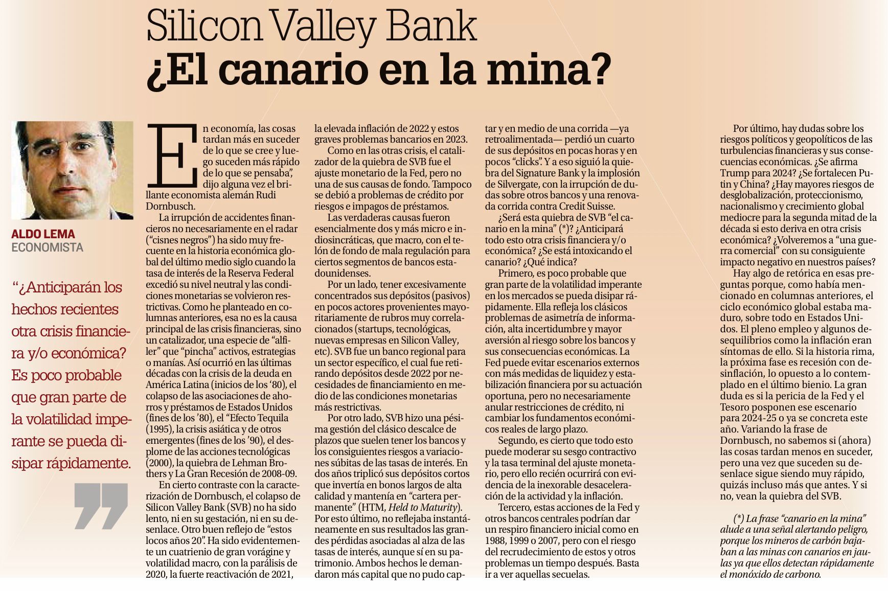 ¿Será esta quiebra de SVB “el canario en la mina”? ¿Anticipará todo esto otra crisis financiera y/o económica? ¿Se está intoxicando el canario? ¿Qué indica?