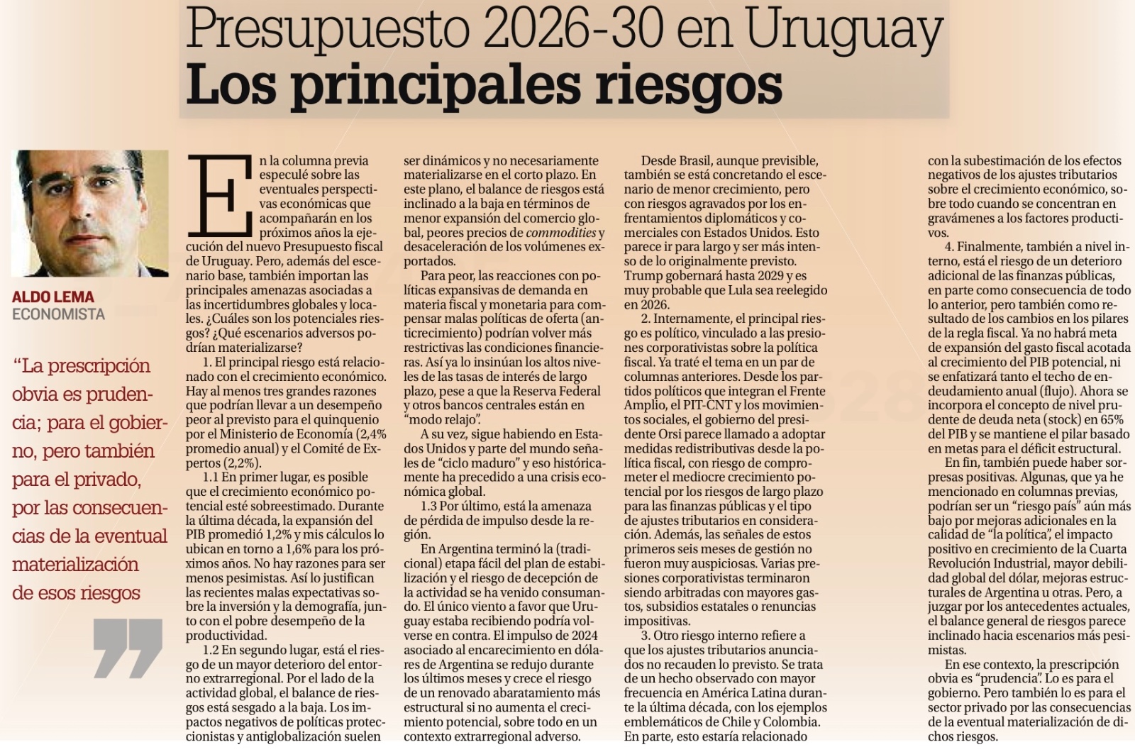 Inicio > Columnas Uruguay > Los principales riesgos del Presupuesto quinquenal de Uruguay